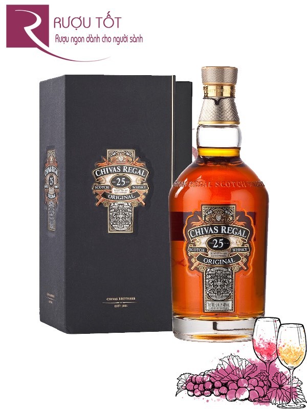 Chivas 25 là dòng rượu được chưng cất từ các loại Whisky có tuổi rượu ít nhất là 25 năm. 25 năm là một phần tư thập kỷ – tức là người làm rượu phải thật sự có tâm, có tầm và sự kiên nhẫn tuyệt đối với loại rượu mình làm ra. Vì vậy không phải là tâng bốc khi nói rượu Chivas 25 là kết tinh của tinh hoa trong 25 năm lịch sử. Rượu nhuốm màu thời gian và là đại diện cho tâm huyết của hãng Chivas Regal. Vì vậy, giá Chivas 25 là xứng đáng và hợp lý.