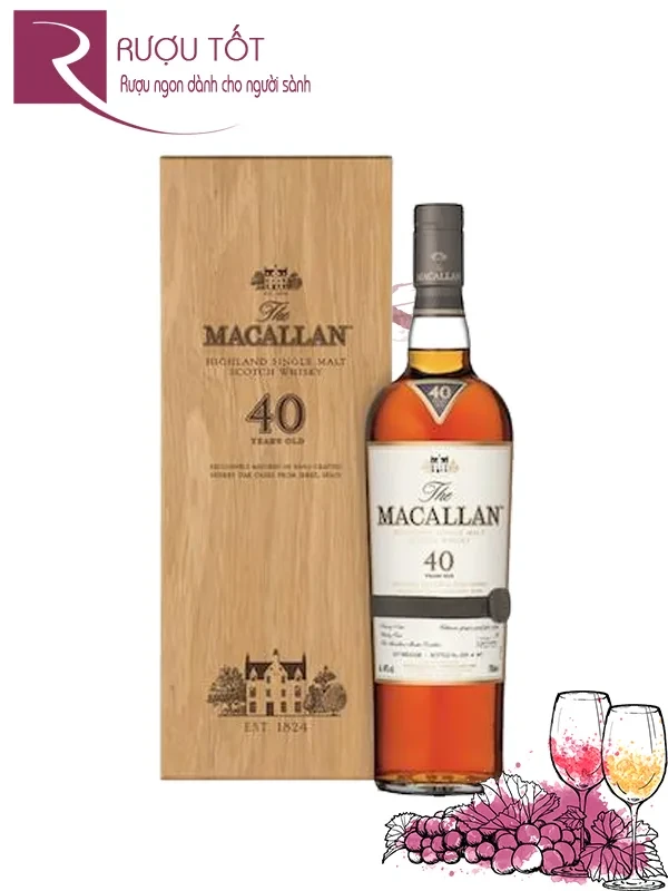 Giá rượu Macallan 40 tại Việt Nam lên tới hơn nửa tỷ đồng. Mức giá này hoàn toàn tương xứng với chất lượng hoàn hảo của một chai single malt whisky được tạo ra từ quá trình ủ đầy tỉ mỉ trong 3 loại thùng ủ rượu sherry cũ làm từ gỗ sồi Châu Âu hoặc Mỹ. Loại rượu 40 năm tuổi này ra mắt lần đầu tiên vào năm 2016 với số lượng chỉ khoảng 500 chai, có nồng độ 45%, mang mùi vị của hoa quả khô, socola, hạt phỉ và gia vị.