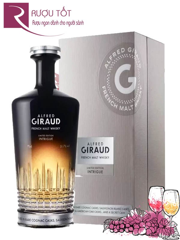 Alfred Giraud Intrigue French Malt là một loại whisky phức hợp và độc đáo, kết hợp sự truyền thống lâu dài trong sản xuất rượu từ thưởng hiệu Alfred Giraud với niềm am hiểu và đam mê đặc biệt đối với whisky. Được đánh giá như là một phiên bản giới hạn của thương hiệu Alfred Giraud , loại whisky này là thành quả của sự pha trộn hoàn hảo giữa hai loại mạch nha kép, mỗi loại lại được ủ tỉ mỉ trong năm loại thùng khác nhau, nổi bật là thùng Sauvignon de Bordeaux và thùng rượu cognac cũ.