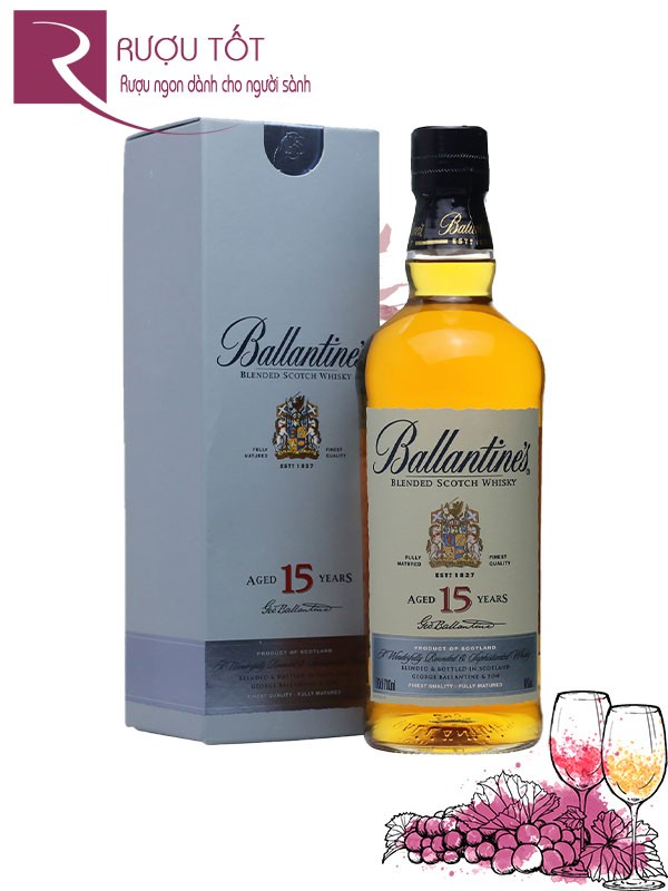 Rượu Ballantine 15 là rượu whisky được ra đời từ sự phối trộn của hơn 20 loại whisky khác nhau, trong đó bao gồm mạch nha và ngũ cốc. Rượu có hương vị đặc trưng của nhiều loại trái cây trong lớp socola đen ngậy và đắng thơm, phù hợp cho những người mới bắt đầu thưởng thức các dòng whisky cao cấp.