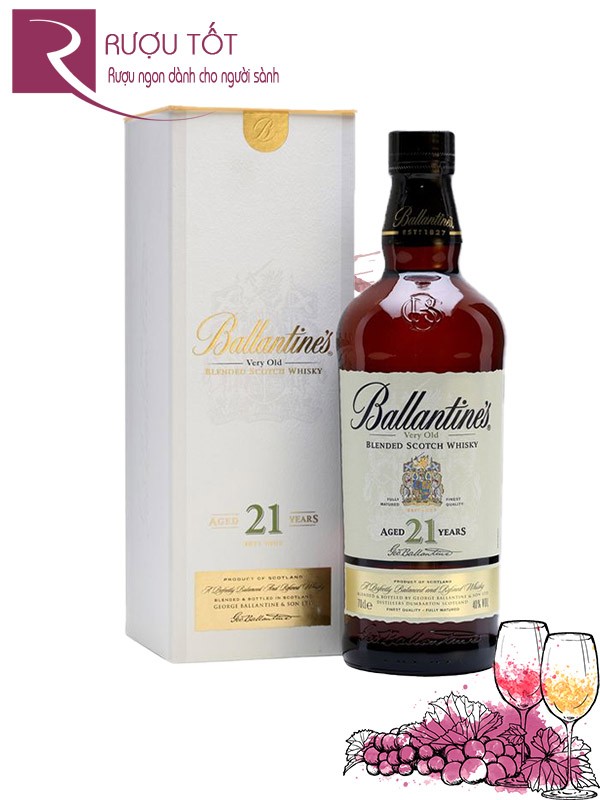 Ballantines 21 là dòng blended whisky nổi tiếng của thương hiệu Ballantines, thu hút người dùng với hương vị nồng nàn trong nước rượu 40% ABV. Với dáng chai tròn cổ điển, màu nâu thuôn từ dưới lên trên, Ballantine’s 21 không chỉ là một loại rượu mạnh mà còn là một tác phẩm nghệ thuật, là kết quả của hơn 2 thập kỷ hoàn thiện và tinh chỉnh.