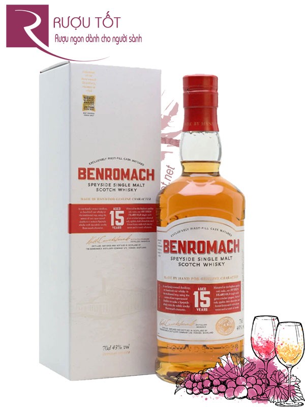 Thay vì chạy theo số lượng, Benromach quan tâm đến chất lượng nhiều hơn. Họ đưa ra cam kết về việc sản xuất rượu theo các lô nhỏ giúp việc kiểm soát hương vị trở nên dễ dàng và hiệu quả hơn. Bên cạnh đó, Benromach 15 Years Old được tạo nên thông qua quy trình ủ trong những thùng gỗ sồi đầu tiên có chất lượng cao nhất (thùng bourbon cũ & oloroso sherry). Cùng với sự kiểm soát chặt chẽ về nhiệt độ, độ ẩm, rượu mới có thể phát huy vẻ đẹp trong hương vị một cách tối ưu nhất.