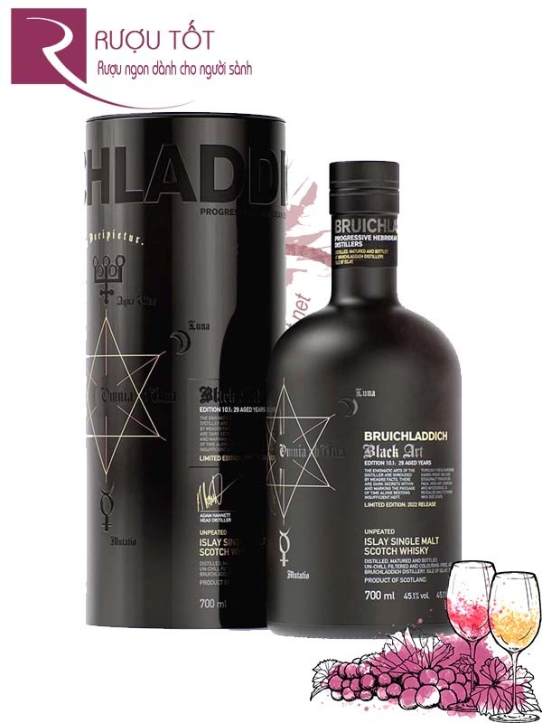 Bruichladdich Black Art là một loại whisky độc đáo được sản xuất bởi nhà chưng cất Bruichladdich ở đảo Islay của Scotland. Được ra mắt lần đầu vào năm 2009, Black Art là một phần của dòng whisky Art Series của họ. Mỗi phiên bản của dòng rượu này đều được đánh số theo từng chai, mang đến sự độc đáo và giá trị sưu tập cho người yêu thích whisky.