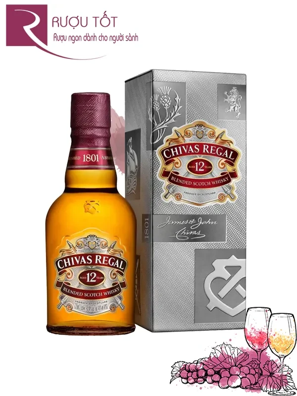 - Chivas 12 375ml là phiên bản Chivas Regal 12 Mini được sản xuất và nhập khẩu chính ngạch bởi Pernod Ricard Việt Nam.