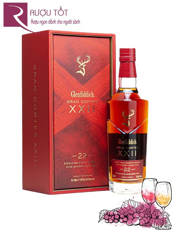 Tên gọi Gran Cortes XXII của phiên bản lần này là sự tôn vinh các triều đại hoàng gia Tây Ban Nha, với ý nghĩa là “cung điện lớn”. Glenfiddich 22 đã kế thừa và phát triển từ sản phẩm Grand Cru của Glenfiddich, một loại mạch nha 23 năm tuổi được hoàn thiện trong thùng cuvée.