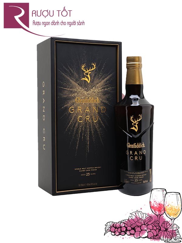 Rượu Glenfiddich 23 YO Grand Cru là một trong những dòng single malt whisky chủ lực của Glenfiddich có mã số vạch chính hãng là 5010327015859. Glenfiddich 23 đã nhận về nhiều giải thưởng đáng kinh ngạc nhờ sự kết hợp tinh tế hai loại thùng cổ điển và hiện đại, trong đó có thùng gỗ sồi cuvée Pháp hiếm có. Kết quả là một loại whisky mạnh mẽ, đậm đà được tạo ra.