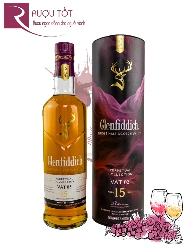 Rượu Glenfiddich Vat 03 là whisky mạch nha đơn cất mười lăm năm tuổi và là loại thứ ba trong loạt “Glenfiddich Perpetual Collection” bao gồm 4 chai. Glenfiddich Vat 03 được ủ trong sự kết hợp giữa thùng gỗ sồi sherry của Châu Âu và thùng gỗ sồi bourbon của Mỹ theo quy trình Solera độc đáo. Có thể nói, nó gợi nhớ ta đến Glenfiddich 15, nhưng theo phong cách sherry mạnh mẽ hơn.