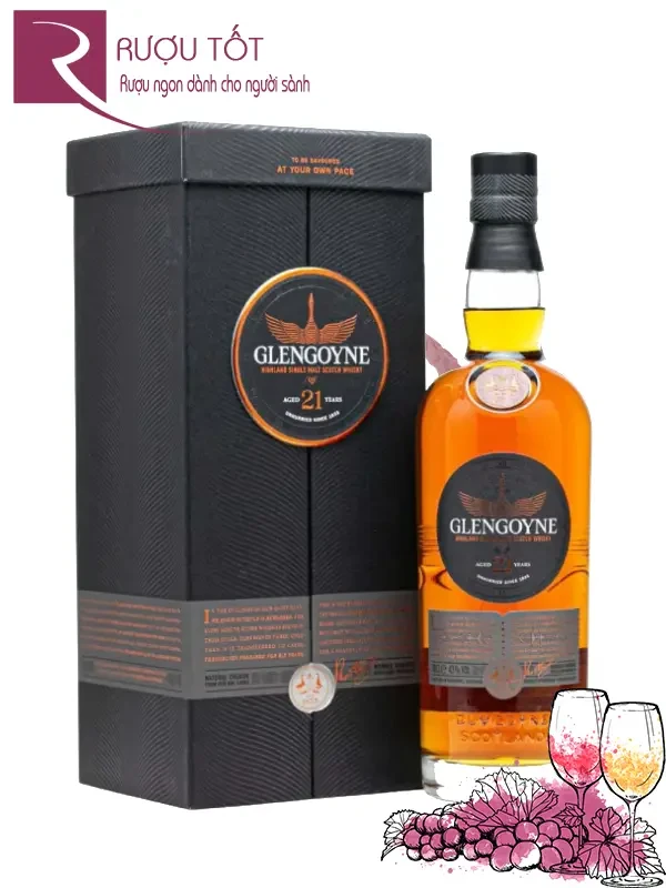 Rượu Glengoyne 21 là Single Malt đến từ thương hiệu Glengoyne có tiếng ở Scotland. Loại rượu 21 năm tuổi này nổi bật nhờ quy trình chưng cất chậm sử dụng thùng gỗ sồi sherry và được đóng chai ở nồng độ 43%, mang lại những hương vị phức hợp của một loại rượu sherry khô, nồng nàn và nhiều trái cây.