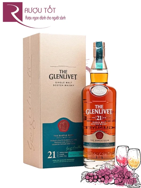 Rượu Glenlivet 21 là chai single malt whisky nằm trong bộ sưu tập The Sample Room của nhà Glenlivet, được ủ theo phong cách độc đáo, hội tụ tinh chất tuyệt vời của 3 loại thùng gỗ sồi từng ủ 1 lần rượu sherry, rượu cognac và rượu port. Sự kết hợp của chúng khiến loại rượu 43% này sở hữu lớp hương vị đa tầng, phức tạp với ghi chú trái cây nhúng trong caramel, gừng, socola và gia vị chiếm ưu thế.
