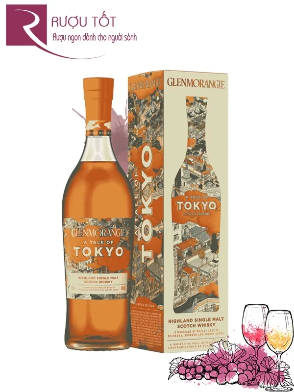 Rượu Glenmorangie A Tale Of Tokyo là dòng single malt whisky 46% ra đời năm 2023, nằm trong series “A Tale of” của nhà Glenmorangie, được chế tác bởi Tiến sĩ Bill Lumsden – người tiên phong trong việc quản lý gỗ, tạo bước ngoặt cho ngành công nghiệp whisky mạch nha đơn cất. Rượu mang đến một trải nghiệm đa giác quan với vẻ ngoài hấp dẫn, nhiều màu sắc cùng hương thơm và mùi vị đa chiều nhờ quá trình ủ trong thùng bourbon, sherry và thùng gỗ Mizunara Nhật Bản quý hiếm.