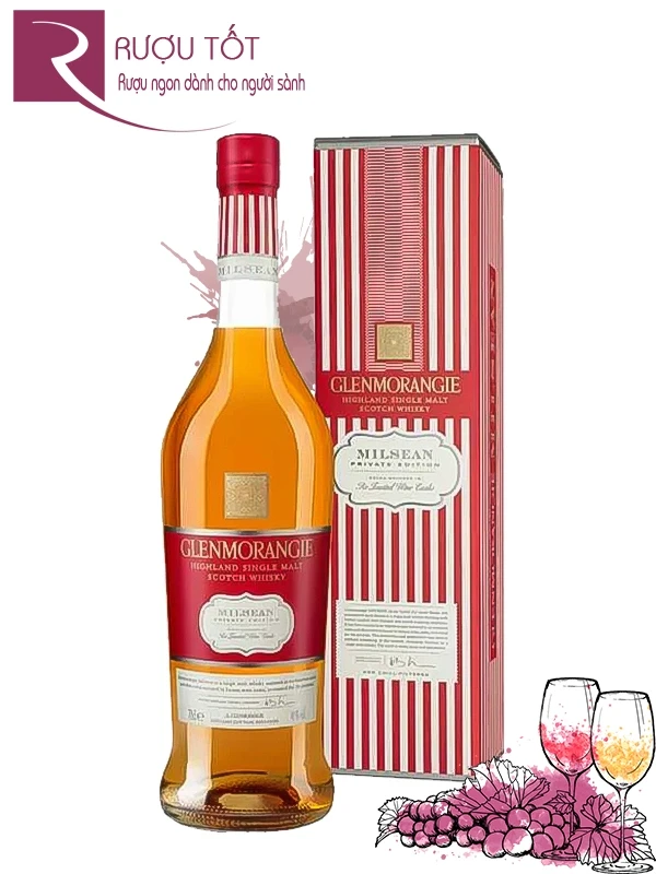 Glenmorangie Milsean là sản phẩm thứ 7 trong bộ sưu tập Private Edition đến từ thương hiệu whisky nổi tiếng Glenmorangie. Tên gọi “Milsean”, mang ý nghĩa “những điều ngọt ngào” trong tiếng Gaelic Scotland, đã khéo léo miêu tả hương vị độc đáo của loại rượu mạnh xa xỉ này. Đây là phiên bản đầu tiên của Glenmorangie tiếp cận quá trình ủ trong thùng rượu vang đỏ Bồ Đào Nha được nướng kỹ.