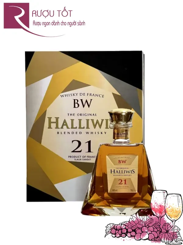 Rượu Halliwis 21 là một loại whisky Pha trộn phiên bản hộp quà giá rẻ đến từ Pháp. Sở hữu bao bì tối giản mà sang trọng, đây là loại rượu thường được lựa chọn để làm quà tặng, góp phần tạo nên vẻ ngoài bắt mắt và mỹ quan cho gói quà.