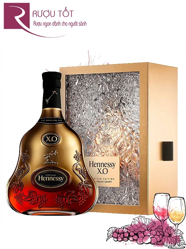 Rượu Hennessy XO Frank Gehry Limited Edition là phiên bản giới hạn đặc biệt được thiết kế bởi kiến trúc sư lừng danh Frank Gehry nhân dịp kỷ niệm 150 năm Hennessy XO. Với phong cách điêu khắc độc đáo, Gehry đã tái hiện chai rượu truyền thống bằng sự kết hợp tinh tế giữa vàng và thủy tinh, tôn vinh di sản phong phú của thương hiệu. Thiết kế ấn tượng tri ân 150 năm lịch sử, đồng thời mở ra một kỷ nguyên mới cho loại rượu mạnh đẳng cấp này, nơi thẩm mỹ sáng tạo của Gehry hòa quyện cùng tinh thần táo bạo của Hennessy.