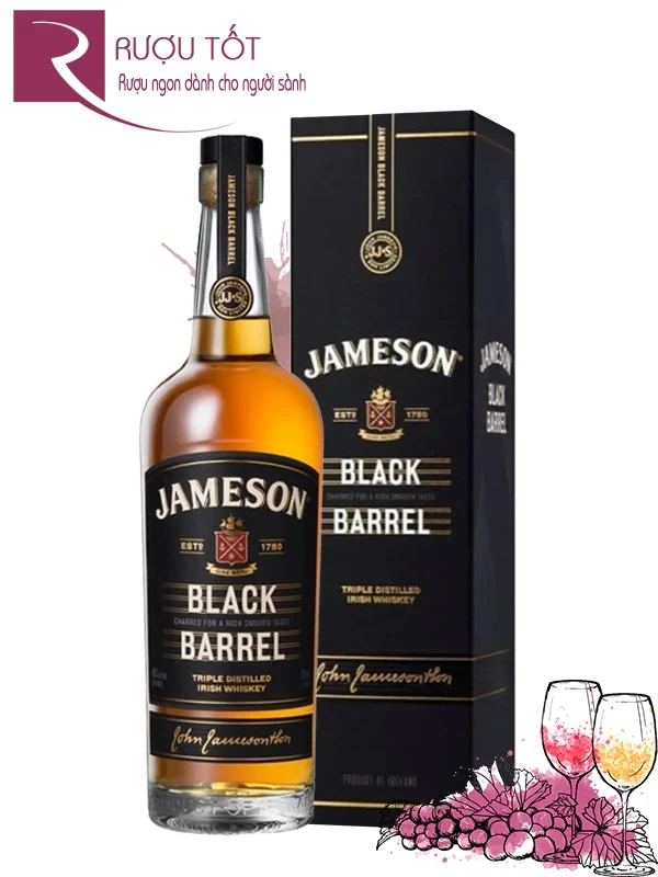 Rượu Jameson Black Barrel là sự pha trộn độc đáo từ những mẻ Whisky Select Batch làm từ ngũ cốc và mạch nha tốt nhất của thương hiệu Jameson tại nhà máy Middleton. Được chưng cất 3 lần và ủ trong 3 loại thùng riêng biệt, sau khi kết hợp, thành phẩm mang nồng độ 40% cùng hương vị phức tạp, đậm đà và êm dịu. Đặc tính ngọt và cay từ gỗ là những gì mà dòng Irish whisky này thể hiện, cực kỳ phù hợp để pha chế cocktail.