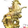 Điểm nhấn đầu tiên khiến rượu Linh Vật Ngựa Lướt Sóng khác biệt với các dòng rượu quà tặng Tết chính là phần vỏ bình. Chai rượu được chế tác tinh xảo theo hình tượng con ngựa tung vó trên sóng nước, với đường nét mạnh mẽ, dứt khoát nhưng vẫn uyển chuyển và hài hòa. Chất liệu sứ cao cấp được mạ vàng bóng loáng phủ toàn bộ, phản chiếu ánh sáng lung linh, vừa sang trọng, vừa đậm chất nghệ thuật. Mỗi chi tiết trên thân ngựa, bờm, sóng nước đều được tạo hình thủ công tỉ mỉ, thể hiện kỹ thuật chế tác khéo léo và tinh thần sáng tạo của nhà sản xuất Nga.