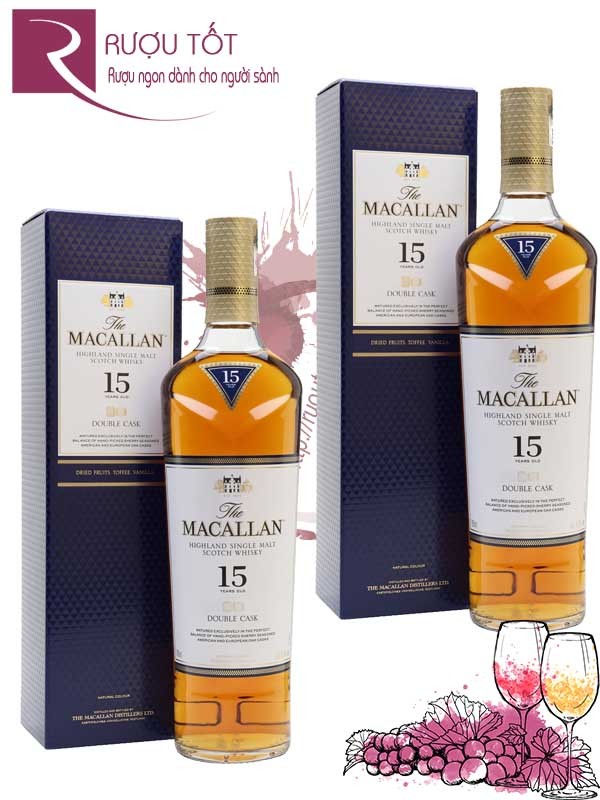 Macallan 15 Double Cask là một loại rượu mạch nha đơn cất được tạo nên từ việc kết hợp hai loại thùng ủ gỗ sồi Mỹ và Châu Âu. Nằm trong bộ sưu tập Double Cask, Macallan 15 là bước cải tiến của phiên bản 12 năm tuổi với hương vị mứt mơ đào cân bằng và ấm áp.