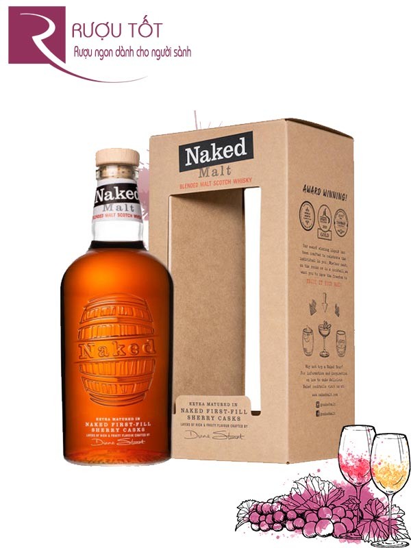 Naked Malt là một loại rượu whisky pha trộn nổi tiếng từ Scotland, mang đặc trưng của sự tinh tế và phong phú trong hương vị. Được sản xuất bởi nhà sản xuất whisky lâu đời The Famous Grouse, dòng rượu này được ủ trong thùng gỗ sồi từng chứa rượu sherry, tạo nên hương vị đặc biệt.