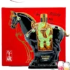 Điểm đặc biệt đầu tiên và cũng là giá trị làm nên danh tiếng của chai rượu này chính là thiết kế gốm sứ cao cấp hình chú ngựa nguyên khối. Chai được chế tác thủ công tinh xảo bởi nghệ nhân Nhật Bản, tái hiện hình tượng ngựa trong tư thế đứng vững đầy uy lực. Từng đường nét trên thân ngựa, từ bờm, dáng đứng đến hệ thống họa tiết trên yên đều được tạo hình chuẩn mực, sắc sảo, nổi bật trên nền men đen huyền sang trọng. Phần thân giữa được phủ men xanh ngọc và nâu độc đáo, mô phỏng bộ yên cương cổ truyền của võ sĩ Nhật tạo nên sự hòa quyện giữa nét văn hóa Á Đông và tinh thần Samurai mạnh mẽ.