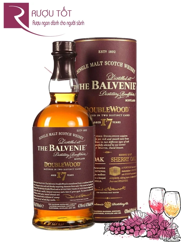 Tháng 10 năm 2012, The Balvenie – thương hiệu whisky single malt thủ công hàng đầu thế giới, chính thức cho ra mắt phiên bản The Balvenie 17 DoubleWood. Đây là sản phẩm được tạo ra để kỷ niệm 50 năm cống hiến của Malt Master David Stewart, đồng thời là phiên bản 17 năm tuổi đầu tiên gia nhập vào dòng sản phẩm cốt lõi của nhà The Balvenie, bên cạnh những cái tên đã làm nên thương hiệu như 12 Year Old DoubleWood, 14 Year Old Caribbean Cask, 15 Year Old Single Barrel và 21 Year Old PortWood. Hãy cùng Rượu Tốt khám phá chi tiết chai Scotch Whisky hảo hạng này trong bài viết dưới đây.