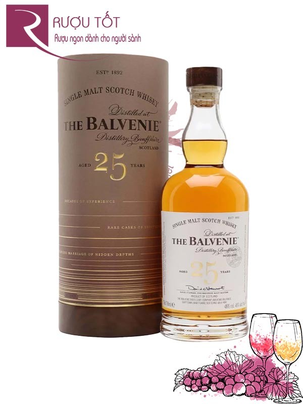 The Balvenie 25 Year Old là dòng whisky có chiều sâu hương vị ấn tượng cùng sự cân bằng hoàn hảo giữa các nốt hương. Sự tận tụy trong từng công đoạn cùng những nốt hương tinh túy đến từ quá trình ủ trong thùng sồi hòa hợp với nhau, biểu hiện phức tạp và đánh thức mọi giác quan.