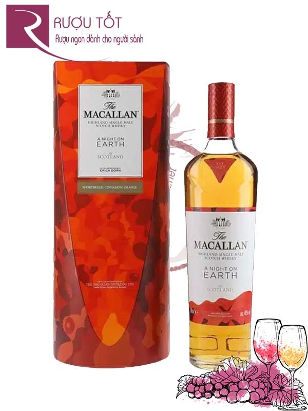 Macallan Earth là dòng rượu whisky nồng độ cao đầu tiên trong loạt rượu lễ hội của thương hiệu The Macallan. Macallan A Night On Earth nắm bắt niềm vui chung của một bữa tiệc đoàn viên, cùng hương vị hân hoan chào đón những khoảnh khắc đặc biệt trong năm.
