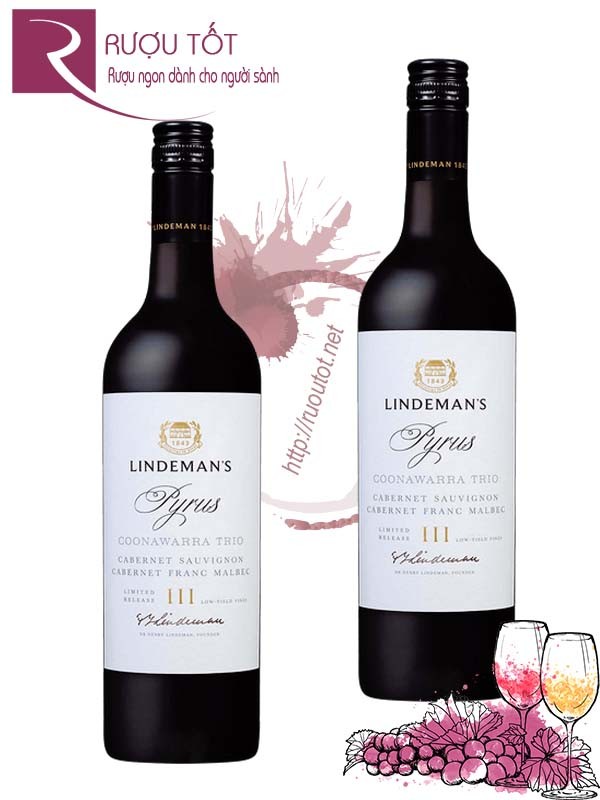 Rượu vang Lindemans Pyrus Trio là chai vang đỏ blend phong cách Bordeaux đến từ vùng Coonawarra, Nam Úc. Sản phẩm nổi bật với cấu trúc tinh tế và tiềm năng lưu trữ lâu dài. Đây là một trong những dòng rượu được giới sành vang săn đón, ghi dấu bởi nhiều giải thưởng quốc tế, khẳng định tầm ảnh hưởng và vị thế nổi bật trong thế giới rượu vang cao cấp.