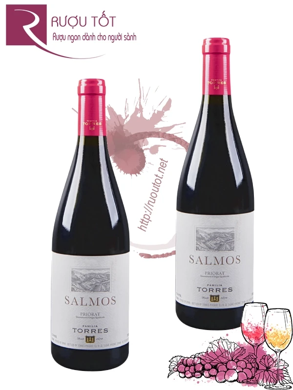 Rượu vang Salmos Torres Priorat là dòng vang đỏ cao cấp đến từ vùng DOQ Priorat, Tây Ban Nha, một trong những vùng rượu vang danh giá nhất xứ Catalonia. Sản phẩm được phối trộn chủ yếu từ hai giống nho truyền thống Cariñena (Carignan) và Garnacha (Grenache). Với nồng độ cồn khoảng 14,5%, Salmos Priorat Torres được xếp vào phân hạng DOQ – cấp bậc cao nhất của rượu vang Tây Ban Nha. Sản phẩm hiện được bán tại Rượu Tốt với mức giá 1.130.000 VNĐ cho một chai 750ml.