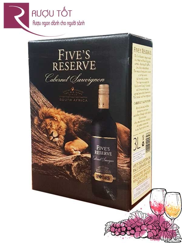 Vang bịch Five’s Reserve được sản xuất từ những trái nho Cabernet Sauvignon nổi tiếng với hương vị độc đáo và phức tạp. Vang bịch Five’s Five’s Reserve Cabernet Sauvignon có vòi mở rất thuận tiện, dễ dàng sử dụng và bảo quản, có thể uống trong vòng 2 tháng sau khi mở vòi. Hơn nữa còn rất tiết kiệm và giá thành rất rẻ so với vang chai.