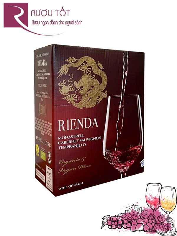 Vang bịch Rienda Blend Organic & Vegan Wine 3L 15 độ Đậm đà