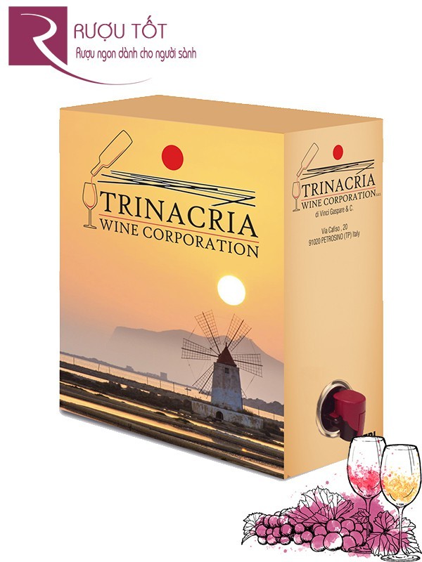 Vang đỏ dùng Syrah làm nguyên liệu chính thường cho ra đời những dòng rượu có mầu tím sẫm. Vang bịch 3 lít Trinacria Syrah mang màu tím này bao trùm lên cả bịch rượu vang với vỏ ngoài mày vàng của vùng đất rượu biểu tượng. Vang bịch Ý vẫn luôn tạo cho mọi người một niềm hân hoang rất riêng khi thưởng thức chúng.