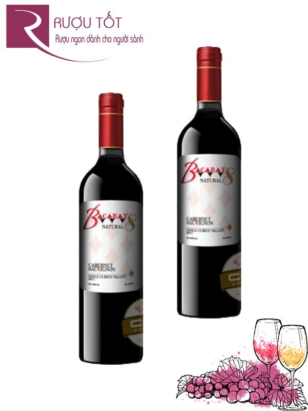 Bacarat Natural 8 Cabernet Sauvignon thoảng hương thuốc lá xen lẫn caremen kết hợp mùi mận chín và anh đào. Hương vị tinh tế, độ tannin vừa phải, dư vị se lại trên vòm miệng mềm mại và quyến rũ. Vang Chile Bacarat Natural 8 Cabernet Sauvignon thích hợp khi được thưởng thức cùng thịt bò, thịt cừu giàu gia vị.