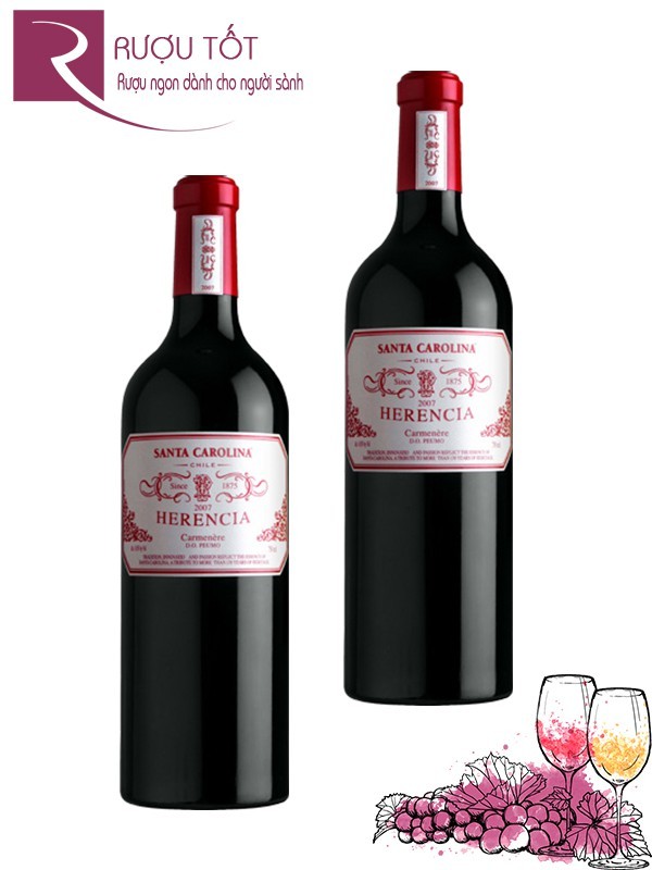 Rượu vang Herencia Carmenere được sản xuất tại Peumo Valley đất nước Chi Lê. Nó được biết đến là một trong những chai rượu đầy tự hào của nhà sản xuất Santa Carolina. Những chai rượu Herencia mang trong mình một hương vị vô cùng đặc biệt. Chúng không hề giống nhau. Bởi với mỗi vụ nho, ta sẽ có những trái nho khác nhau. Từ đó, rượu cũng có hương vị khác nhau đôi chút.