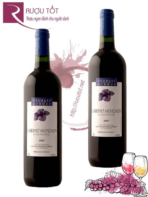 Rượu vang Georges Duboeuf Cabernet Sauvignon là sản phẩm thuộc Georges Duboeuf, một thương hiệu vang danh tiếng của Pháp, nổi bật với các dòng vang đến từ vùng Languedoc-Roussillon. Rượu có nồng độ 13%, được làm từ 100% giống nho Cabernet Sauvignon, đóng chai dung tích 750ml.
