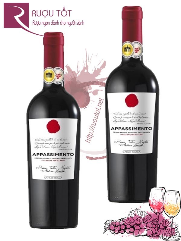 Bạn không còn xa lạ với rượu Vang Carlo Scala Appassimento vì bạn trót yêu những dòng vang hảo hạng và mê mẩn với vẻ đẹp của nước Ý. Rượu vang này có một vị ngọt ngào như vị ngọt của tình yêu. Ý chính là quê hương của chai rượu này, được làm từ nho Primitivo, và nồng độ 14%. Điều làm cho chai rượu đặc biệt là nó được sản xuất bằng một phương pháp ủ nho tiêu biểu mang tên Appassimento.