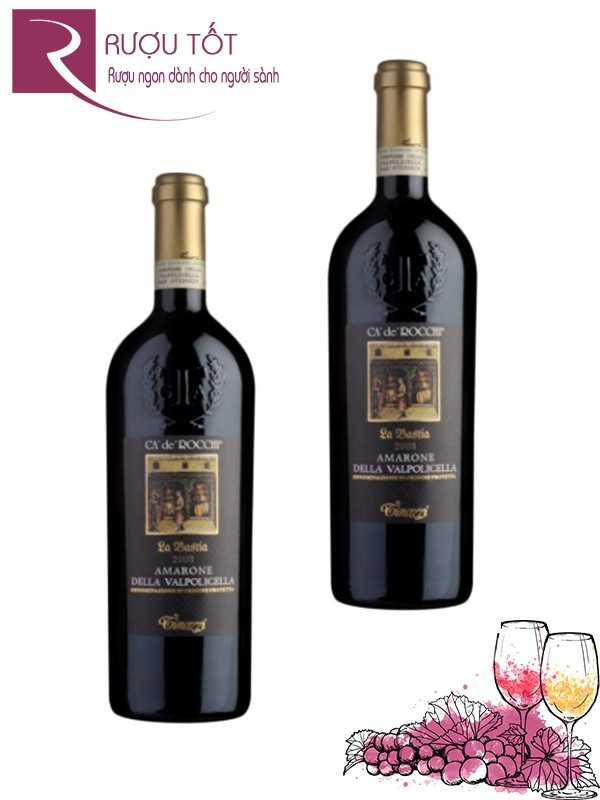 Rocone La Bastia Della Valpolicella DOP Ca de ‘Rocchi được chế biến đặc biệt theo công thức truyền thống. Nó được pha trộn rất tinh tế theo công thức: Corvina 80%, Rondinella 15%, Molinara 5%. Rượu có một hương thơm rất phức tạp, với hương thơm của quả mọng đỏ như anh đào và mận. Balsamic nhẹ và có ghi chú cay hòa vị ngọt một chút của socola. Hương vị đầy đặn, cấu trúc tốt, phức tạp và cân bằng với một kết thúc dài.”