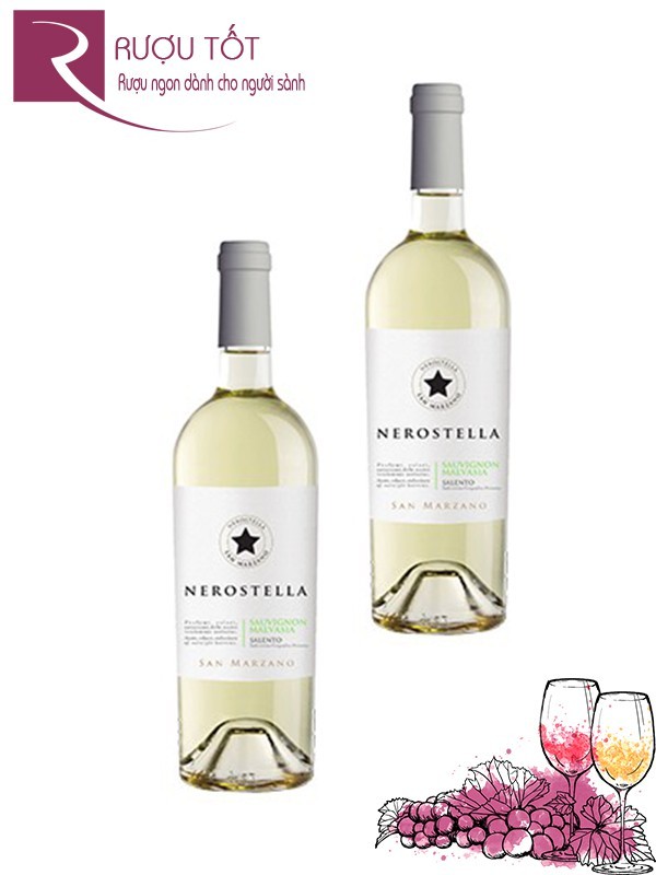 Sauvignon Blanc là giống nho rất phổ biến, được trồng rộng rãi ở rất nhiều khu vực trên thế giới và có nguồn gốc được tìm thấy ở khu vực Tây Nam nước Pháp. Sự kết hợp này đã tạo ra dòng rượu vang Nerostella Sauvignon Malvasia San Marzano có hương vị đặc biệt hài hòa. Rượu mang đến những cảm nhận rất sảng khoái, hương thơm của táo xanh, cây tầm ma và một vài loại hoa cỏ màu hè đặc biệt phù hợp với sự ngọt ngào của hương vỏ cam cùng các loại trái cây khô.